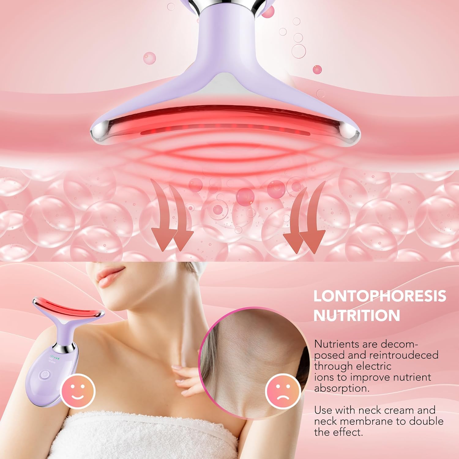 - The uniquely curved Arc massage head effortlessly glides along your face, helping to improve absorption of creams and lotions