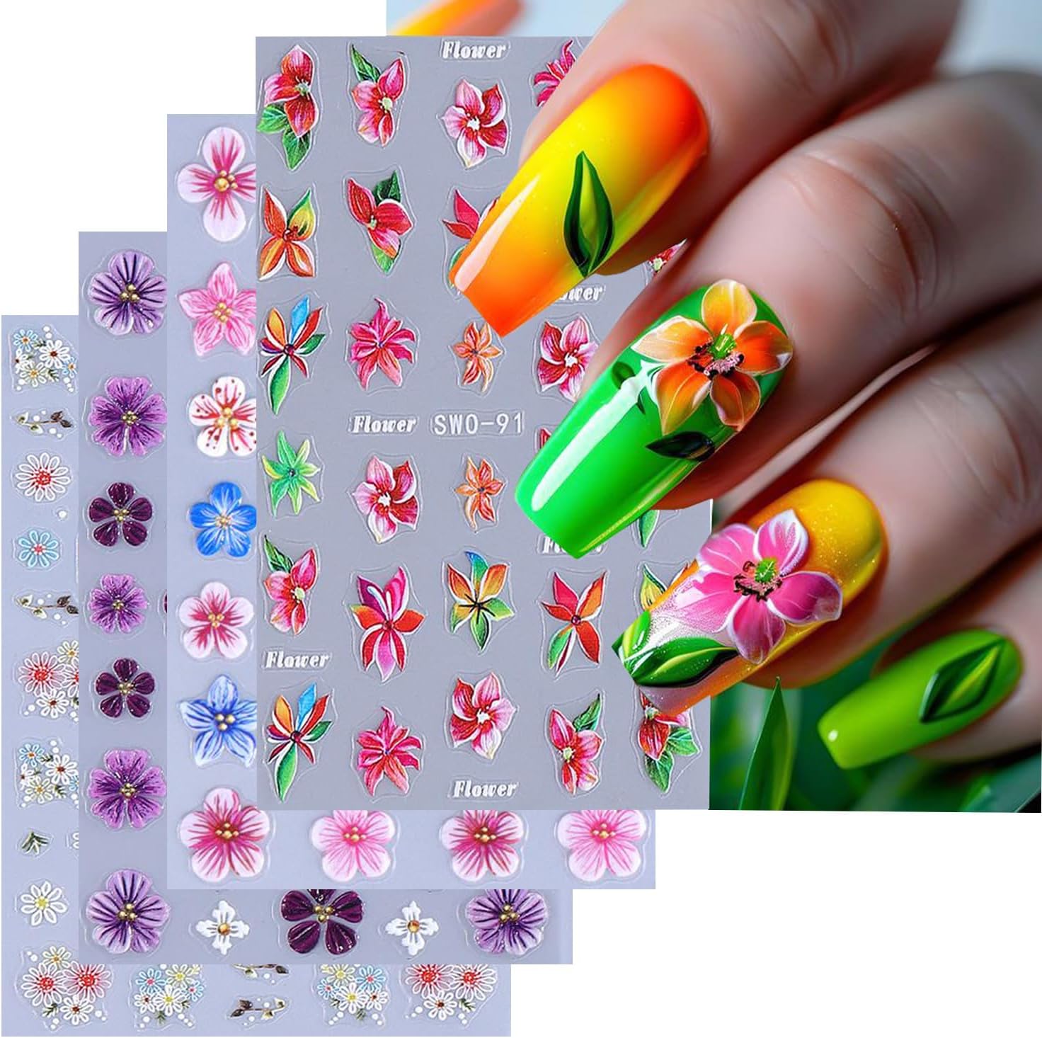 - Service: If you have any questions about our colorful flowers nail stickers, please contact us and we will solve them for you in time