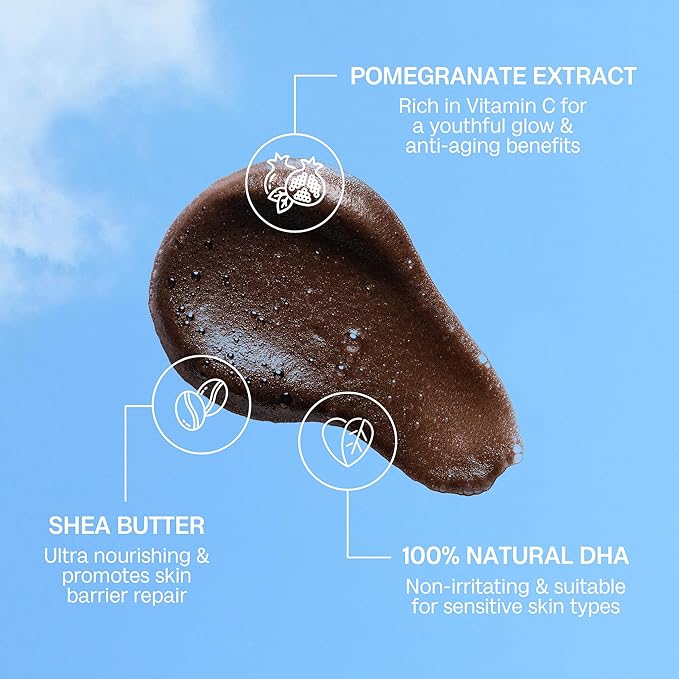- 𝗛𝘆𝗱𝗿𝗮𝘁𝗶𝗻𝗴, 𝗙𝗮𝘀𝘁-𝗗𝗿𝘆𝗶𝗻𝗴 𝗙𝗼𝗿𝗺𝘂𝗹𝗮 𝗳𝗼𝗿 𝗦𝗺𝗼𝗼𝘁𝗵, 𝗥𝗮𝗱𝗶𝗮𝗻𝘁 𝗦𝗸𝗶𝗻: Our self tanner is infused with moisturizing ingredients like shea butter, leaving your skin smooth and hydrated while developing a bronze self tanning resut that lasts for days. Ideal for those who want a hydrating self tanner that nourishes the skin as it tans, without the sticky residue or dryness of traditional formulas.