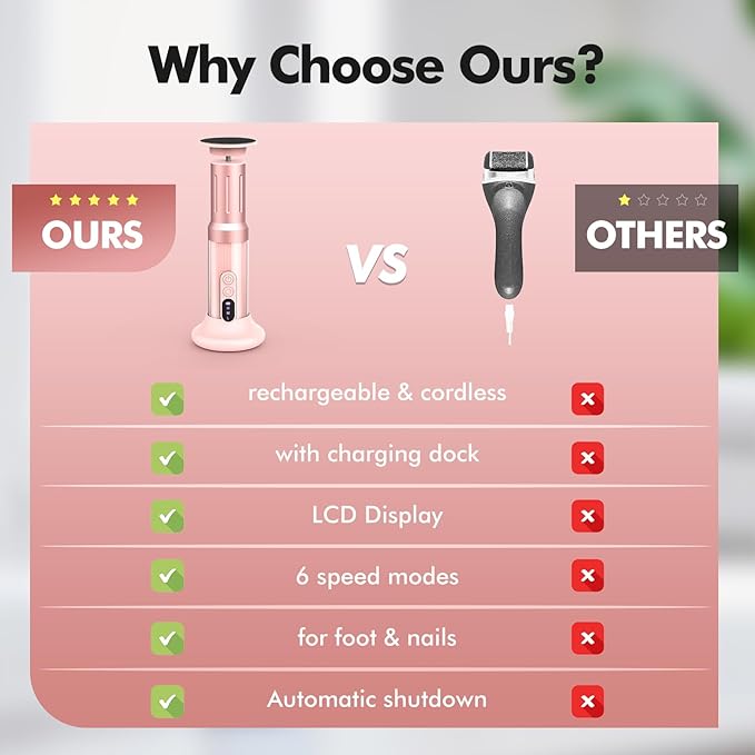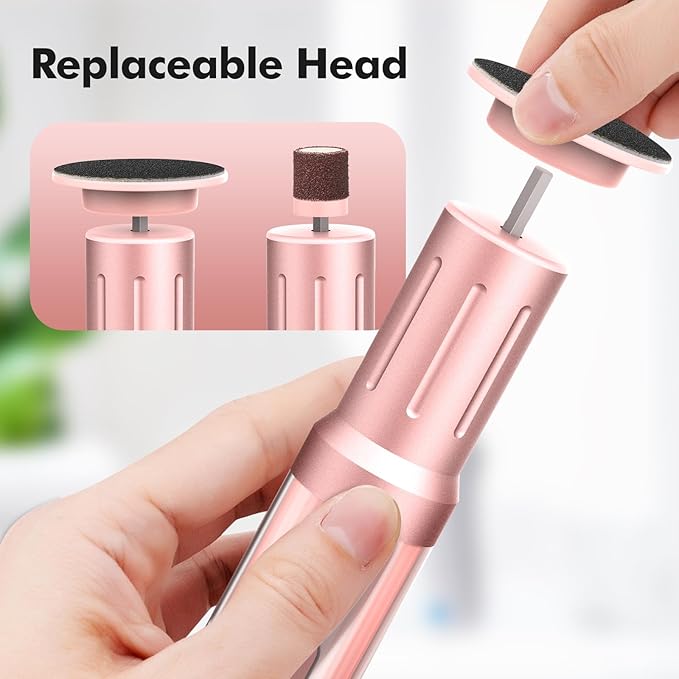 - 2 in 1 cordless electric foot filer and nail grinder: The electric callus remover heavy duty can be used for feet and nails. the electric filer comes with 10pcs flint paper and 10pcs fine sandpaper for feet, 10pcs flint nail sand circle and 10pcs fine sand circle for nails.