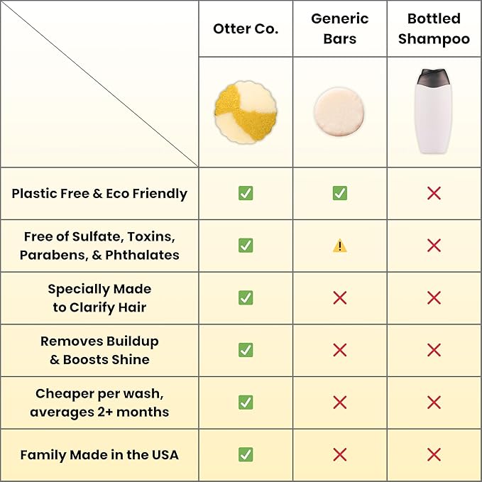 Otter co. Clarifying Apple Cider Vinegar Shampoo Bar for Build Up – Argan oil, Rosemary, Nettle, Jojoba oil – Vegan, Sulfate Free & Non Toxic – Women and Mens Shampoo, All Hair Types, Made in USA