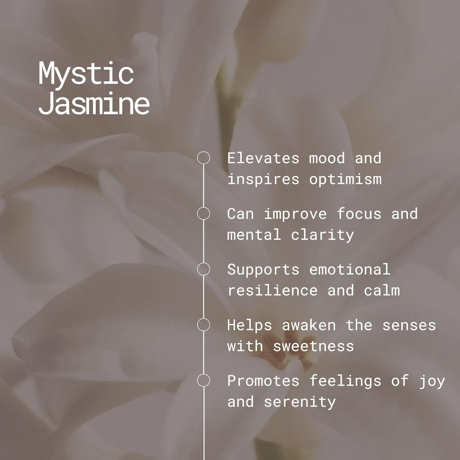 - 🌸 Mystic Jasmine – Uplifting Floral Bliss for Mind & Spirit Let the enchanting fragrance of Mystic Jasmine awaken your senses with its sweet, floral notes. Revered for its mood-lifting and stress-relieving qualities, this scent creates a serene atmosphere that promotes inner peace, emotional clarity, and romantic warmth. Perfect for daily rituals, evening relaxation, or setting a calming mood in your space.