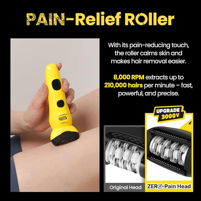 - Pain Relief Roller Technology – The Comfort Glide roller gently stimulates the skin as it removes hair, reducing resistance and offering a smoother, more calming experience—especially on sensitive areas like underarms and bikini line.