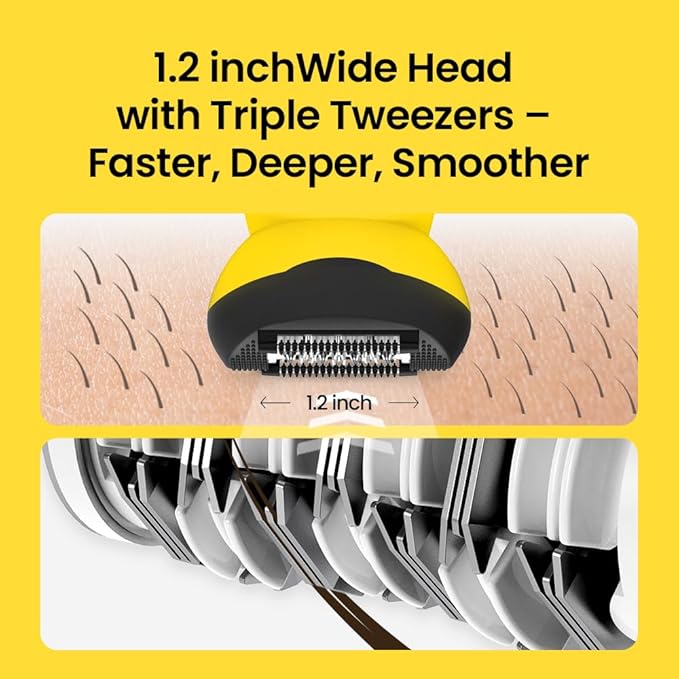 - High-Speed, High-Volume Epilation – Features a triple-row roller system with 36 precision tweezers that can remove up to 210,000 hairs per minute. The wide 1.2-inch head covers more surface area, reducing overall grooming time.