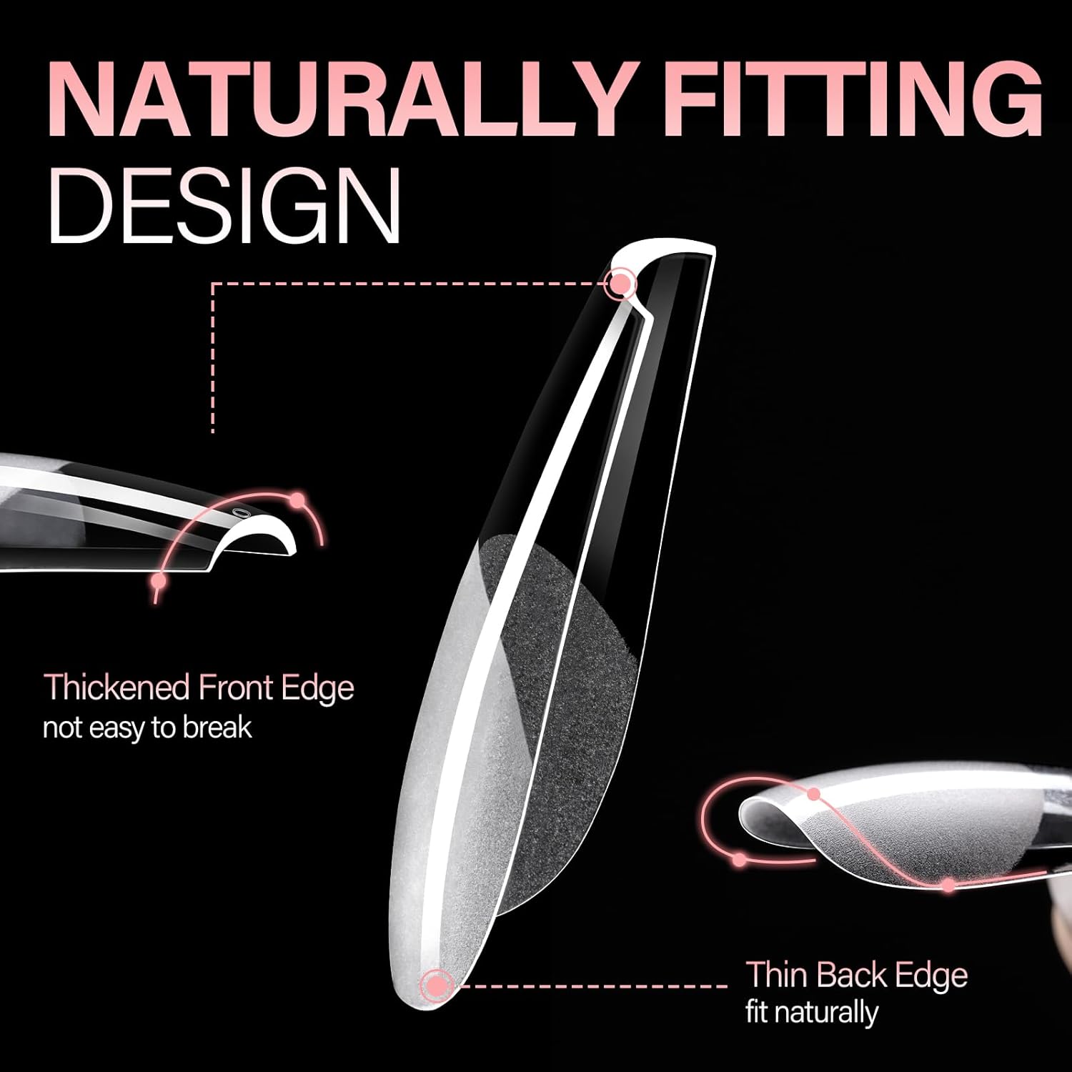 - 【AILLSA fake nails, Paired with AILLSA glue for better fit】: Our soft gel tips feature “Thin back edge, thick front edge”. The thinner back edge can make the soft nail tips fit your nails better, which will not make you feel uncomfortable. Also, the half matte nail tips are firmer bonding to your nails for a seamless fit with no air bubbles; The thickened front edge makes it not easy to break or bend, having longer lifespan.