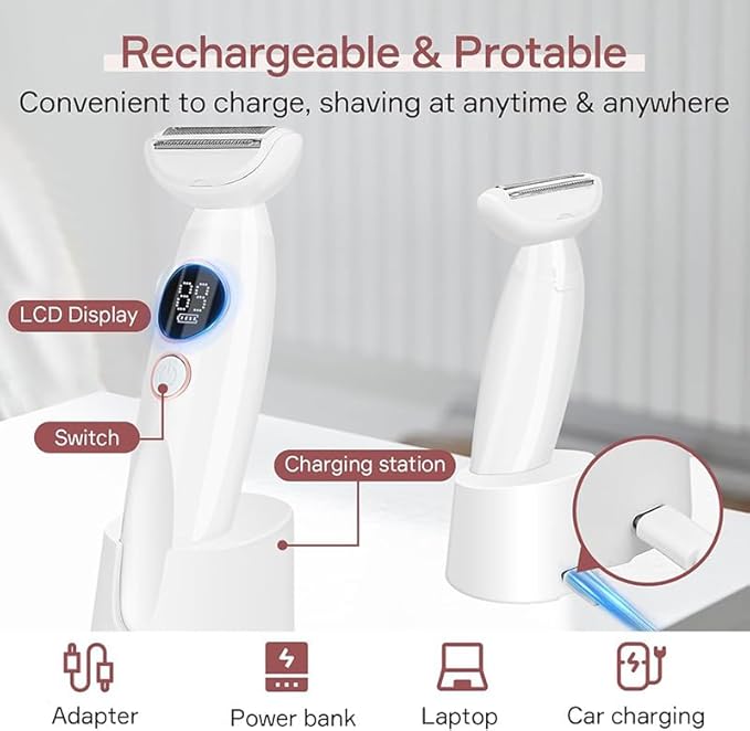 - Long-Lasting Battery: cordless electric shaver for women is a good companion for a trip, offering you quick grooming on the go. Equipped with a USB cable for convenient charging outdoors or on vacation, the bikini trimmer runs up to 90 minutes on 1.5 hours charge. Let’s enjoy extra portability with our lightweight trimmer.