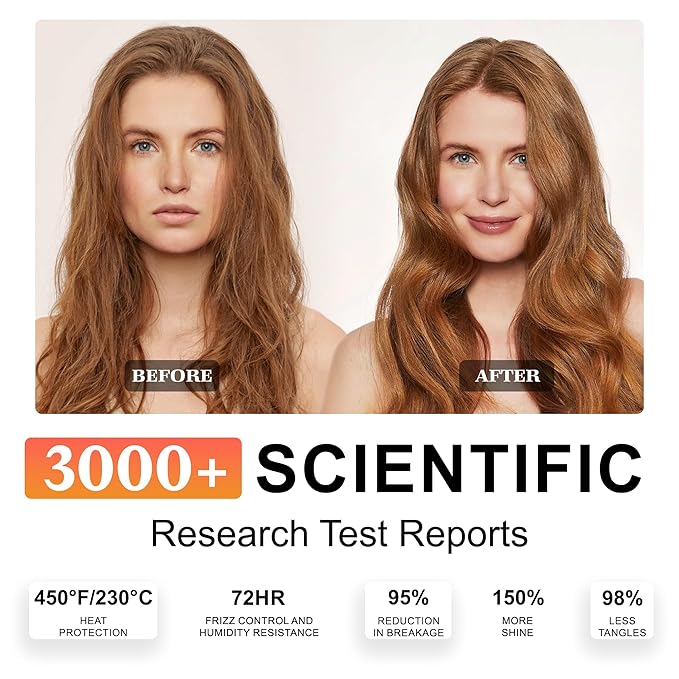 - Salon-Grade Results at Home: Shields hair from heat up to 450°F/230°C while fighting humidity for 72-hour frizz defense. 150% more shine, 98% fewer tangles. Ideal as a pre-styling heat protectant or daily anti-frizz solution for curly, wavy, or coily textures—natural or treated