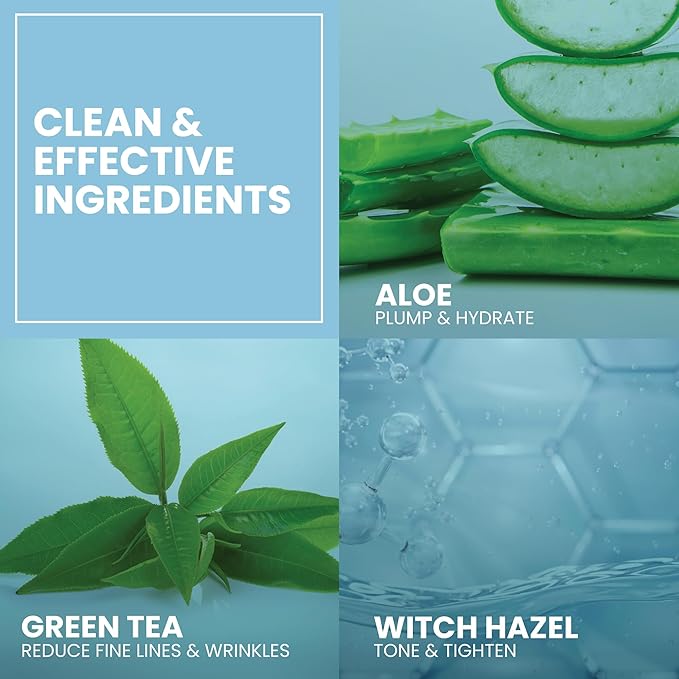 - Packed With Botanicals: Ingredients such as aloe vera serve to hydrate the skin, while witch hazel works to soothe skin and tighten pores.