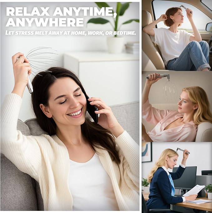 - Spa-Like Tingling with Every Use: Experience a 360° sensation with 20 flexible fingers tipped in smooth beads. This upgraded head scratcher adapts to your scalp and mimics a spa-style massage