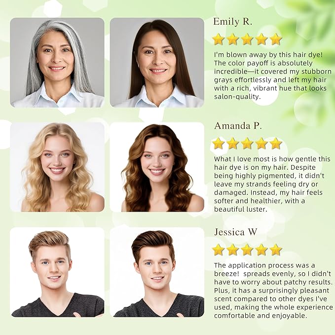 - For All Hair Types: Whether you have straight, curly or colored hair, our hair dye shampoo for men and women is perfect, it evenly covers every strand of hair and provides balanced coloring results without damaging, frizzing or nourishing the hair