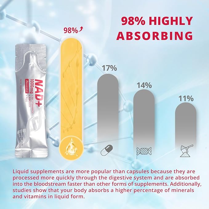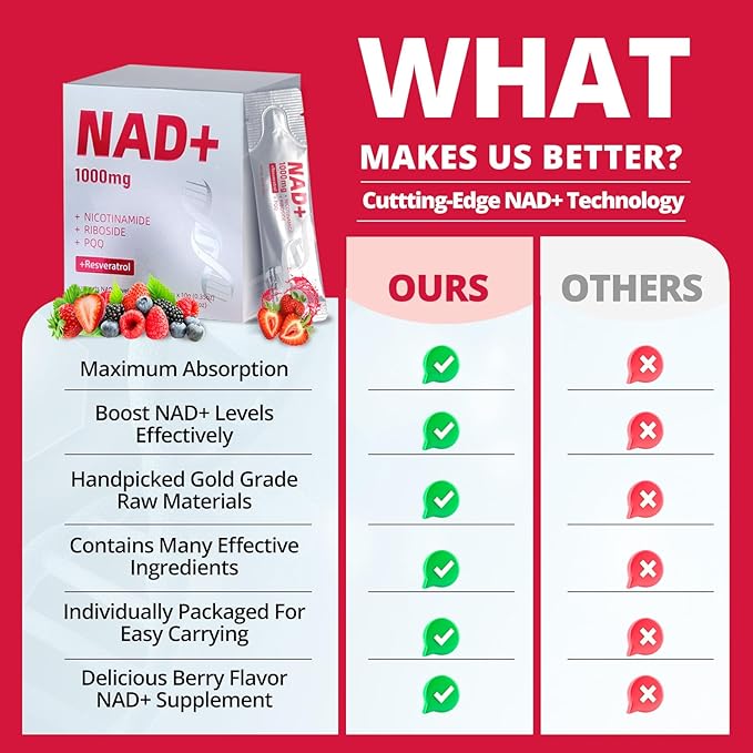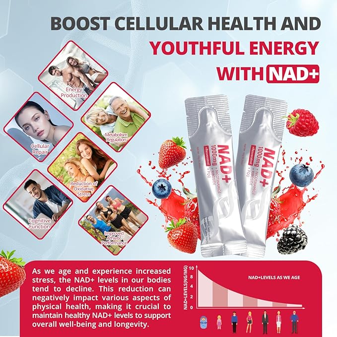 - High-Performance Complex: Each serving of our Supplement delivers a powerful 1000mg dose of Nicotinamide Riboside, Resveratrol, and PQQ to promote healthy aging, enhance cellular energy production, and boost overall vitality for both women and men.