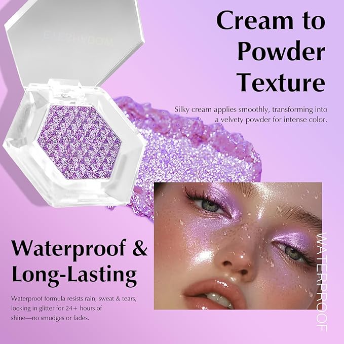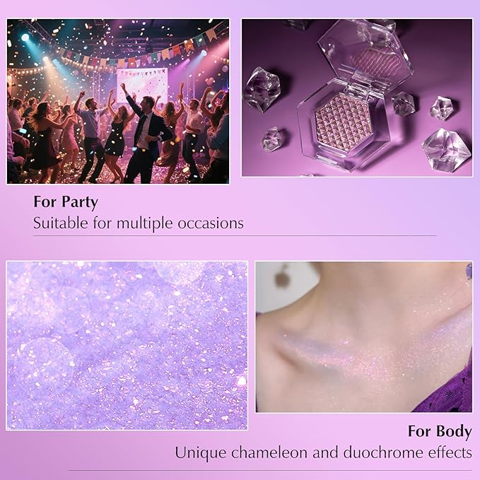 - Color Shifting Chameleon Cream Eyeshadow: Unlock the magic of color with this purple glitter eyeshadow palette, featuring shades that shift and change with every angle. Experience the unique duochrome eyeshadow effect that transforms your look in an instant. Create a multi-dimensional makeup statement perfect for any occasion