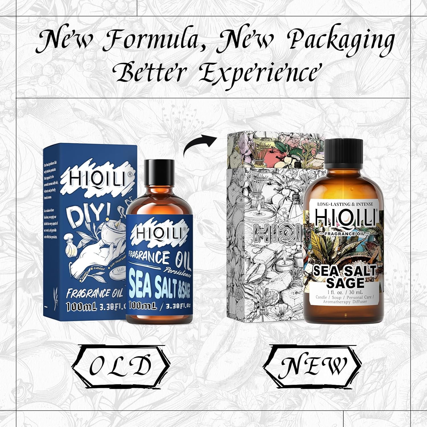 HIQILI Sea Salt Sage Fragrance Oil for Diffuser Use, Candle Making Scents, Soap Making Supplies, Car/Hotel Collection Diffuser Oil - 1 Fl Oz