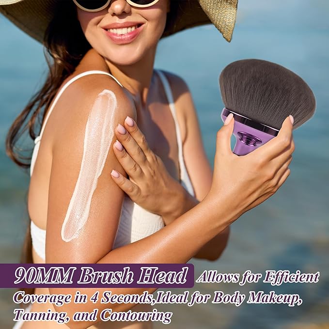 - EXTRA-WIDE 90MM MAKEUP BRUSH HEAD,DESIGNED FOR SPEED & FULL-BODY COVERAGE:This self tanner kabuki brush doubles as a full-body makeup brush, featuring an oval shape that’s perfect for evenly blending tanning mousse, self tanner, bronzer, or body foundation. Designed for speed and precision, it hugs every contour—from legs to arms, chest, and back—delivering streak-free, natural-looking results in just minutes. from daily tans to nights out, this kabuki makeup brush delivers effortless full-body glam.