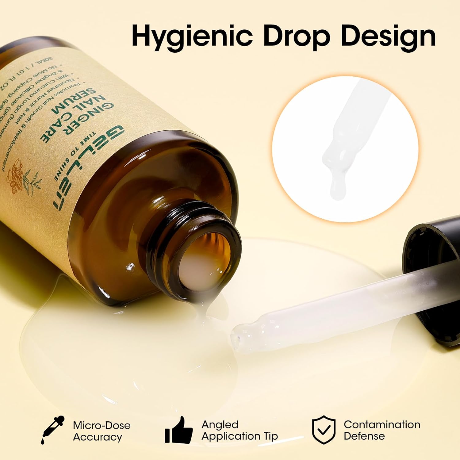 Gellen 30ml Ginger Nail Growth Serum for Nail Strengthener and Growth, Nail Repair Treatment for Weak Brittle Splitting Damaged Nails, Hydrated & Nourished Nail Care Solution for Hands & Feet