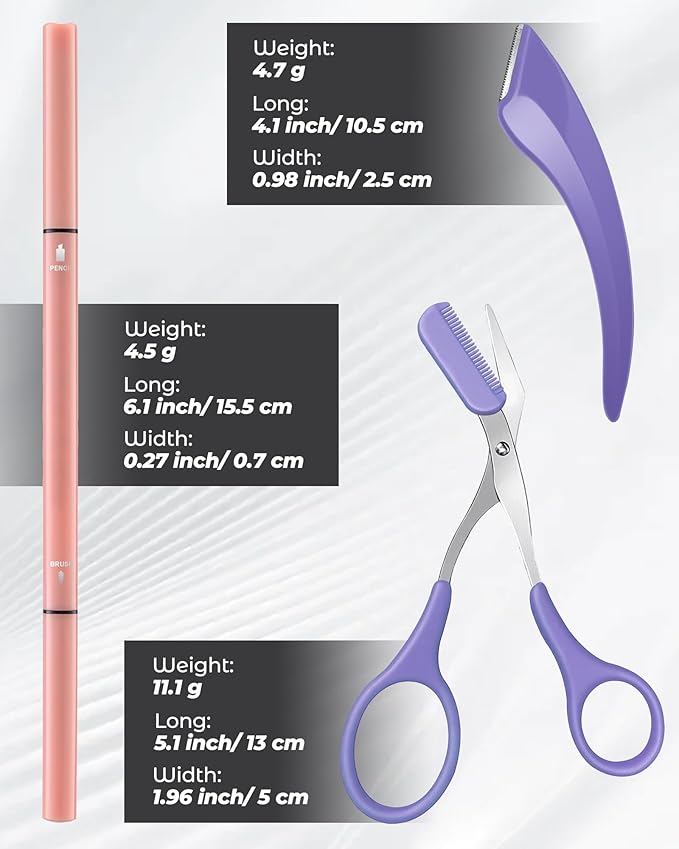 - ALL-IN-1 SALON-GRADE EYEBROW KIT: Upgrade your brow routine with our all-in-one salon-grade kit. It includes 12 no-sharpen microblading pencils, a stainless steel curved razor with 0.1mm safety guard, and an eyebrow trimmer set. Trim, define, and fill easily, achieving natural, salon-quality brows. Ideal for beginners and pros alike